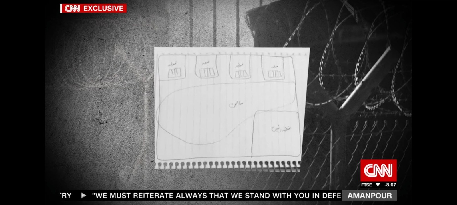 حنا نقشه بازداشتگاهی که پلیس در آنجا معترضان را مورد آزار قرار میداده برای سیانان کشیده است.