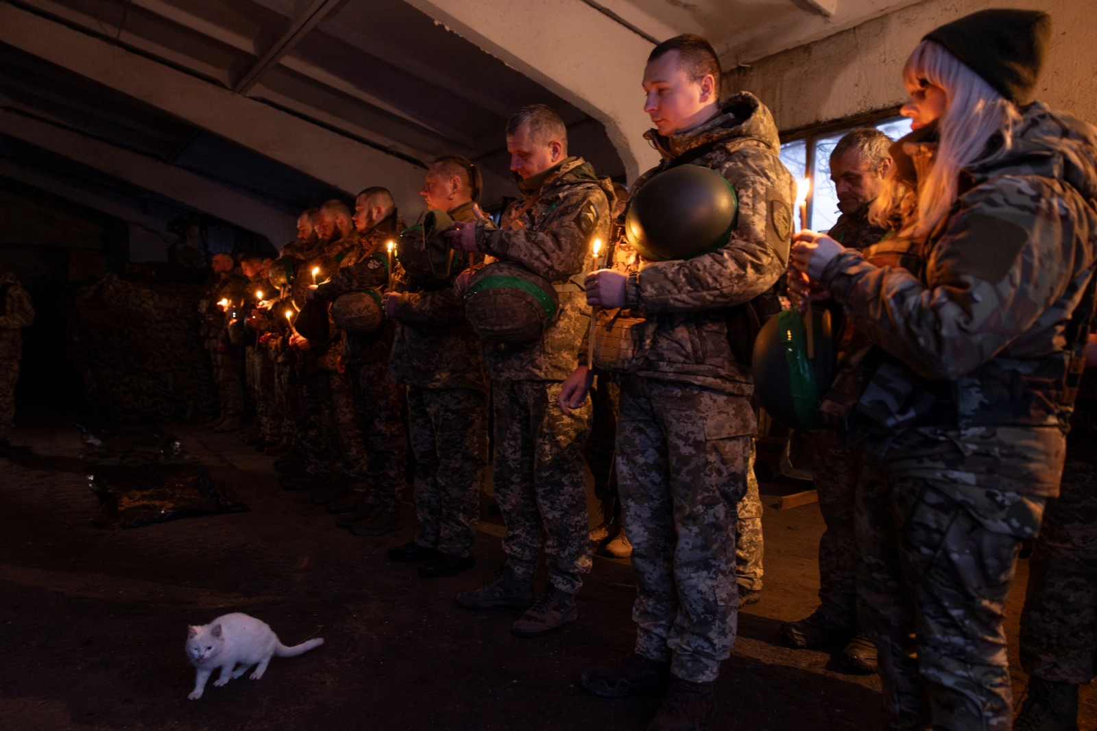 سربازان اوکراینی در نزدیکی خط مقدم به مناسبت کریسمس شمع روشن کردند
