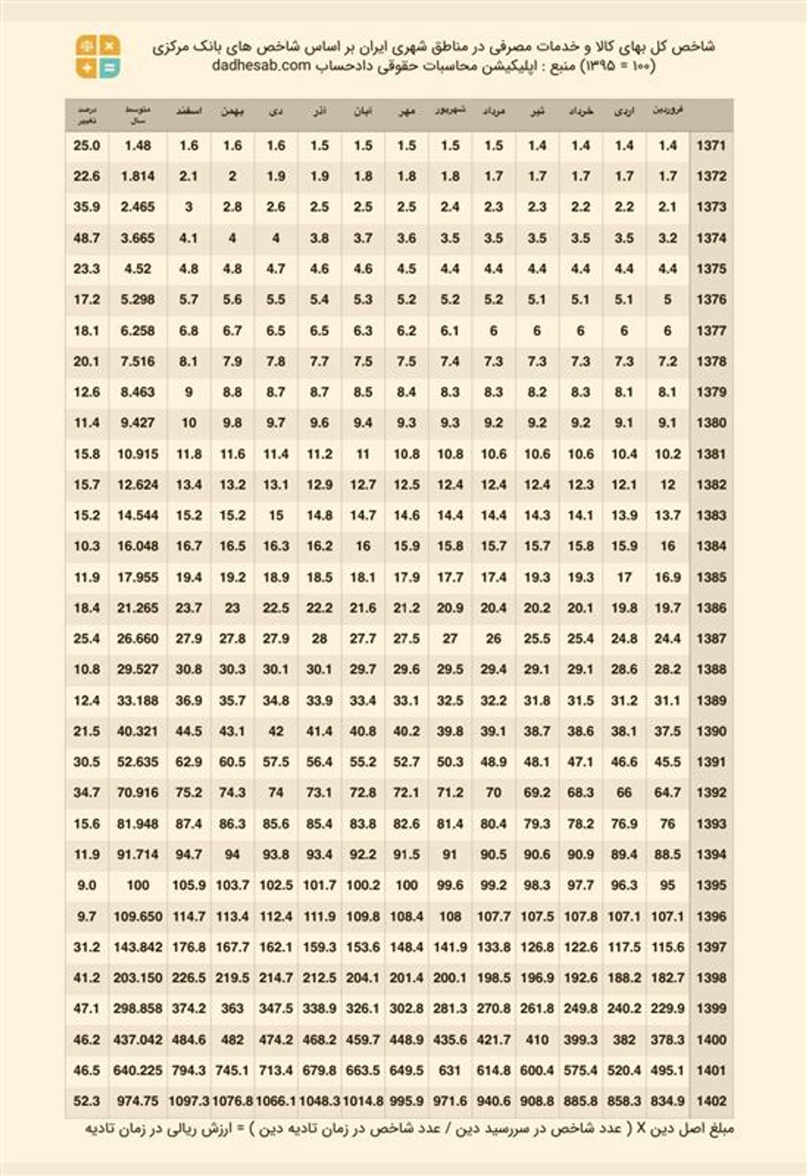 بانک مرکزی در جدول محاسبه تادیه بدهی و مهریه، نرخ تورم سالانه در سال ۱۴۰۲ را ۵۲/۳ درصد اعلام کرد که بالاترین نرخ تورم سالانه از ۸۰ سال قبل تا کنون است.