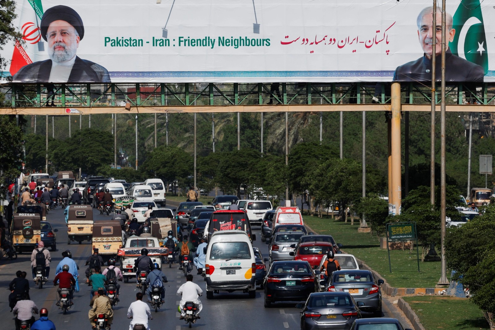 بیلبوردهایی مرتبط با سفر رئیسی به پاکستان در شهر کراچی