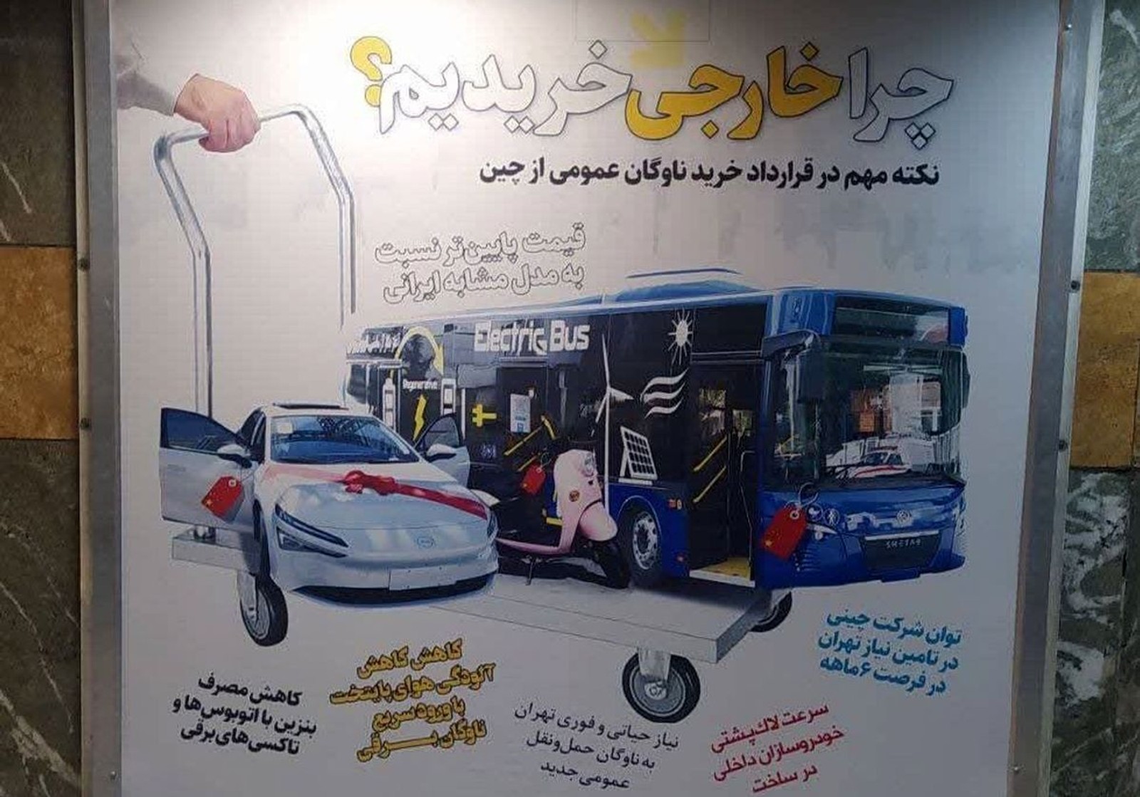 به دنبال این واکنش‌ها، شهرداری تهران برای توجیه اقدام خود، به نصب بنرهایی با عنوان «چرا خارجی خریدیم؟» در سطح شهر تهران پرداخته است.