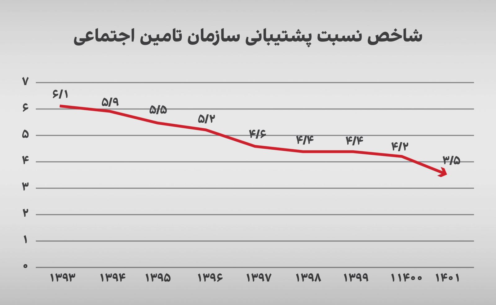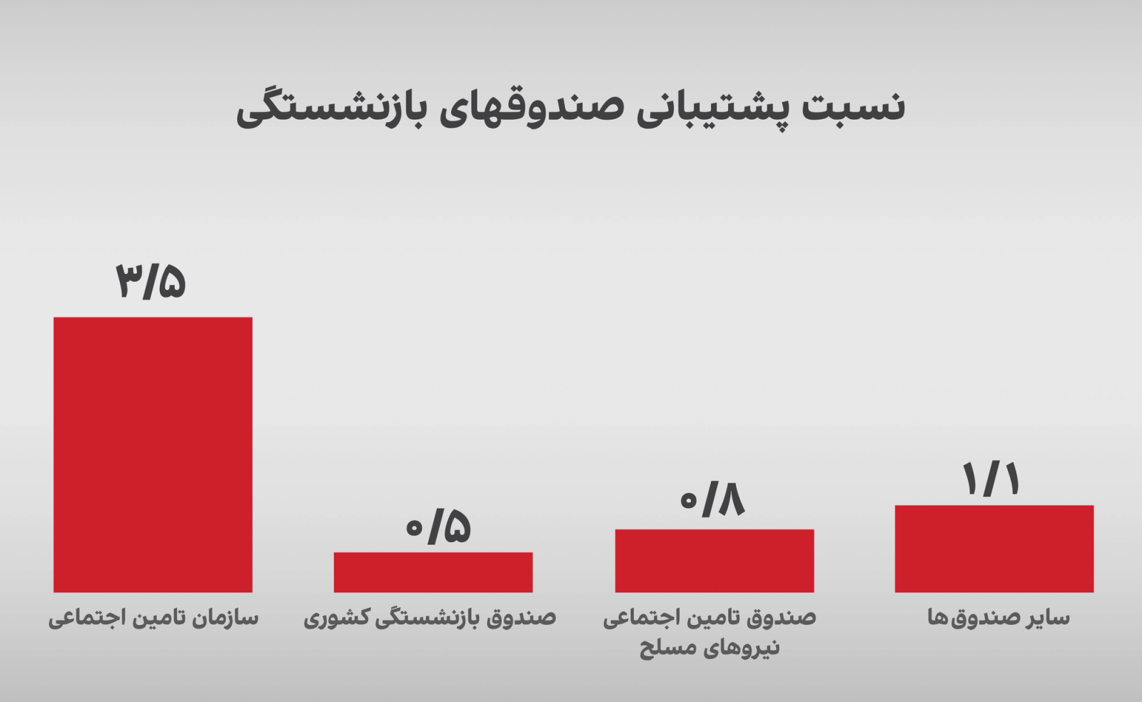 به گفته دفتر بیمه‌های اجتماعی وزارت تعاون، کار و رفاه اجتماعی در سال ۱۴۰۱، این نسبت برای صندوق بازنشستگی کشور حدود ۹۳ درصد بوده است.