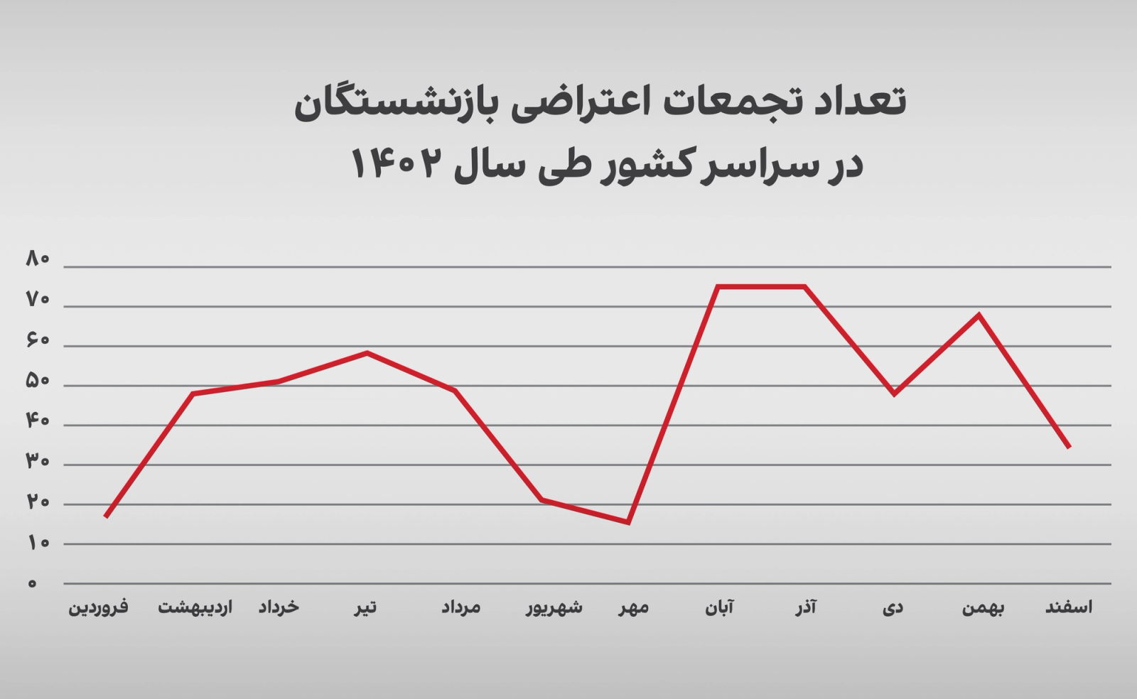 بررسی اخبار اعتراضات بازنشستگان در سال ۱۴۰۲ نشان می‌دهد در سال گذشته روی هم رفته حدود ۵۶۰ تجمع اعتراضی از سوی بازنشستگان در ۸۱ روز از سال ۱۴۰۲ در سراسر کشور شکل گرفته است.