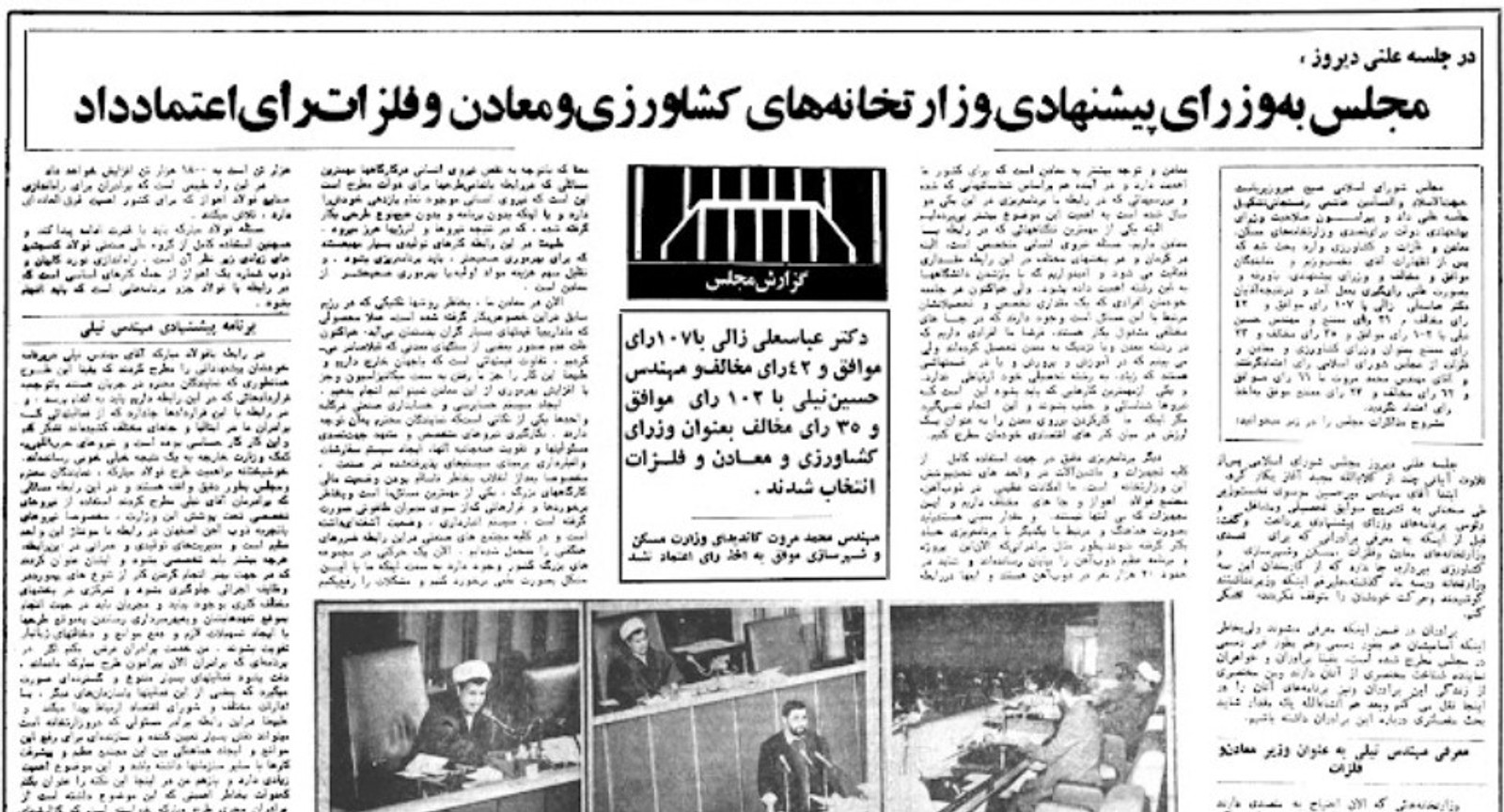 حسین نیلی احمدآبادی، متولد سال ۱۳۲۵ در اصفهان بود که بعد از انقلاب به عضویت حزب جمهوری اسلامی درآمده بود. او در سرکوب اعتراضات سالهای نخست جمهوری اسلامی در استان چهارمحال و بختیاری نقش داشت. از سال ۱۳۶۰ معاون سیاسی استانداری چهارمحال و بختیاری بود. از سال ۱۳۶۲ تا سال ۱۳۶۴، در دولت موسوی وزیر معادن و فلزات بود. اینکه او از وزارت در دولت اول به مدیریت در دولت دوم موسوی رسید، شاید به دلیل اختلافات موسوی و علی خامنهای در زمان ریاست جمهوری خامنهای بود.