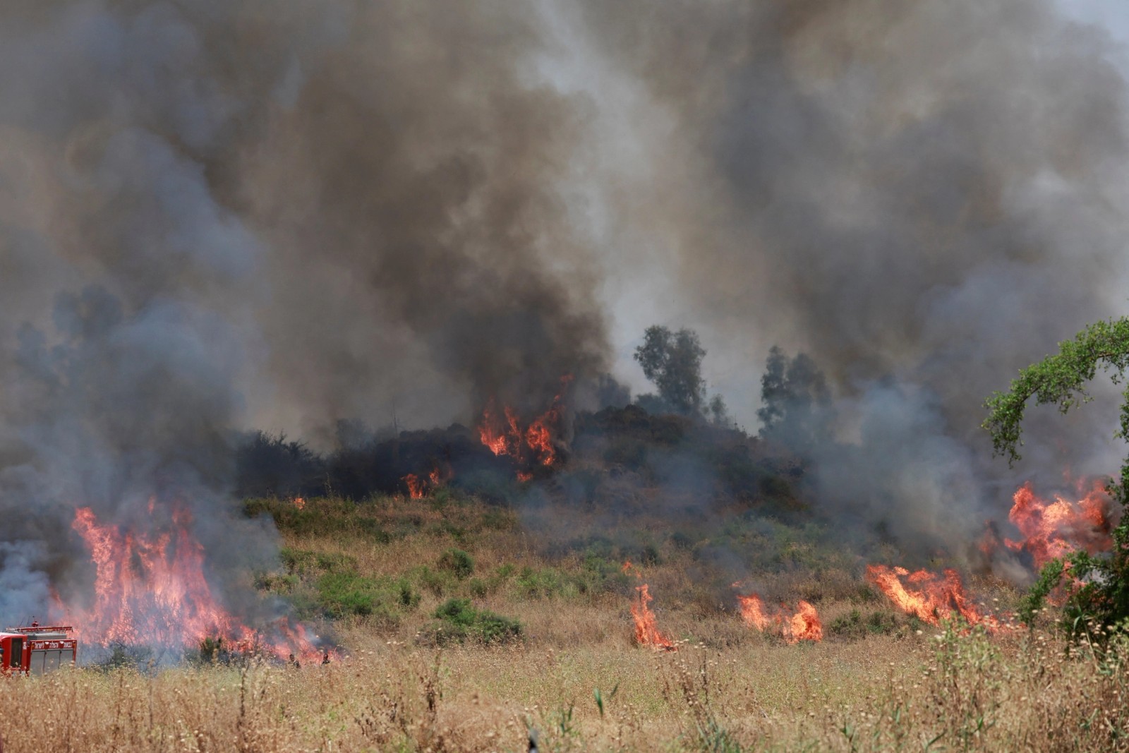 آتش‌سوزی در نزدیکی کیریات شمونا در شمال اسرائیل به دنبال حمله راکتی حزب‌الله، ۲۵ خرداد