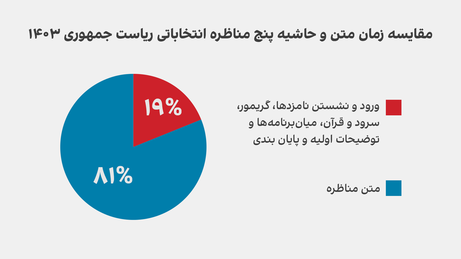 پایانبندی و خداحافظی مجری برنامه در این پنج مناظره، ۱۱ دقیقه و ۵۲ ثانیه طول کشید.