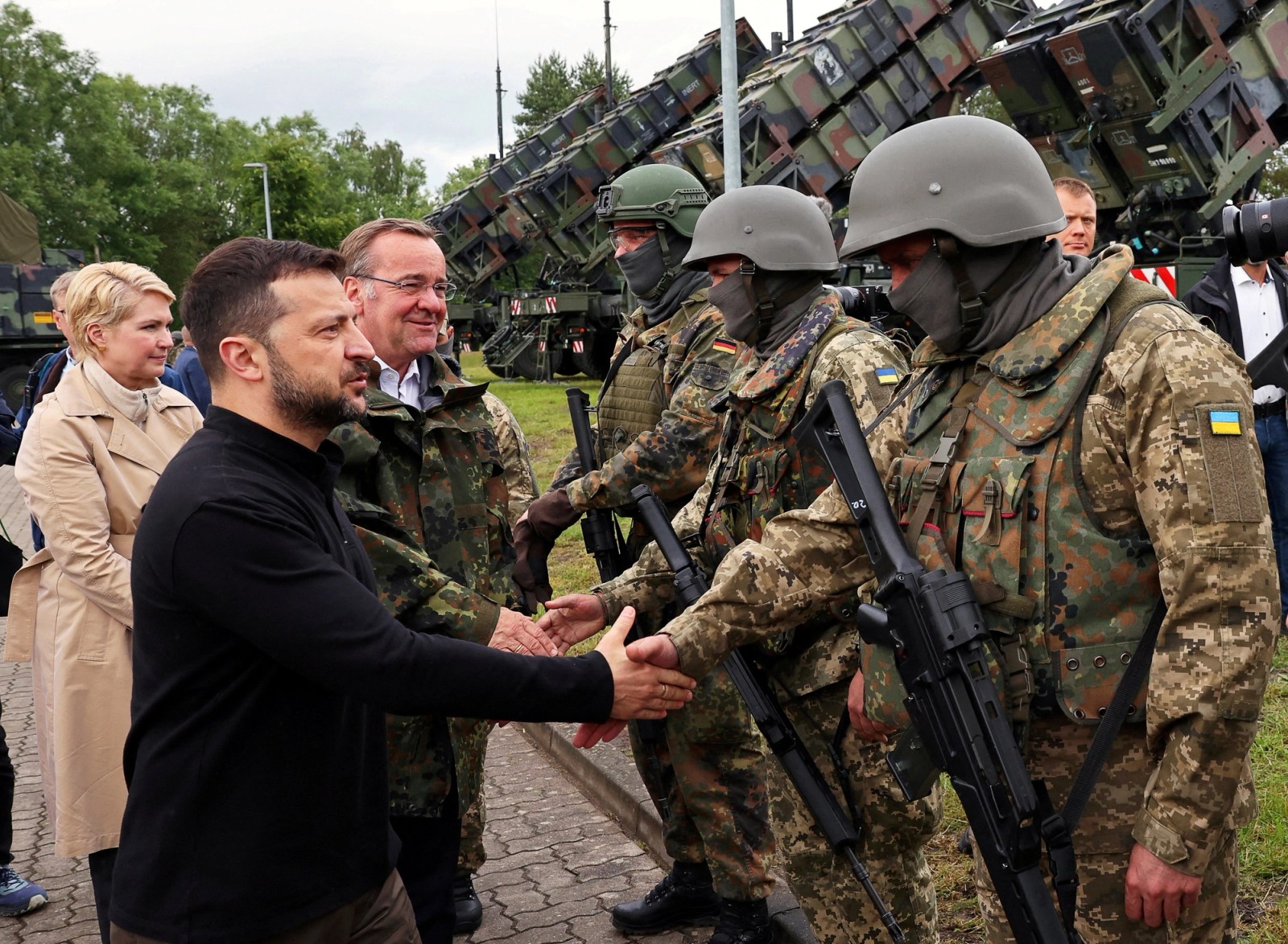 دیدار ولودیمیر زلنسکی، رییسجمهوری اوکراین از اردوگاه آموزشی سربازان این کشور در آلمان، ۲۲ خرداد