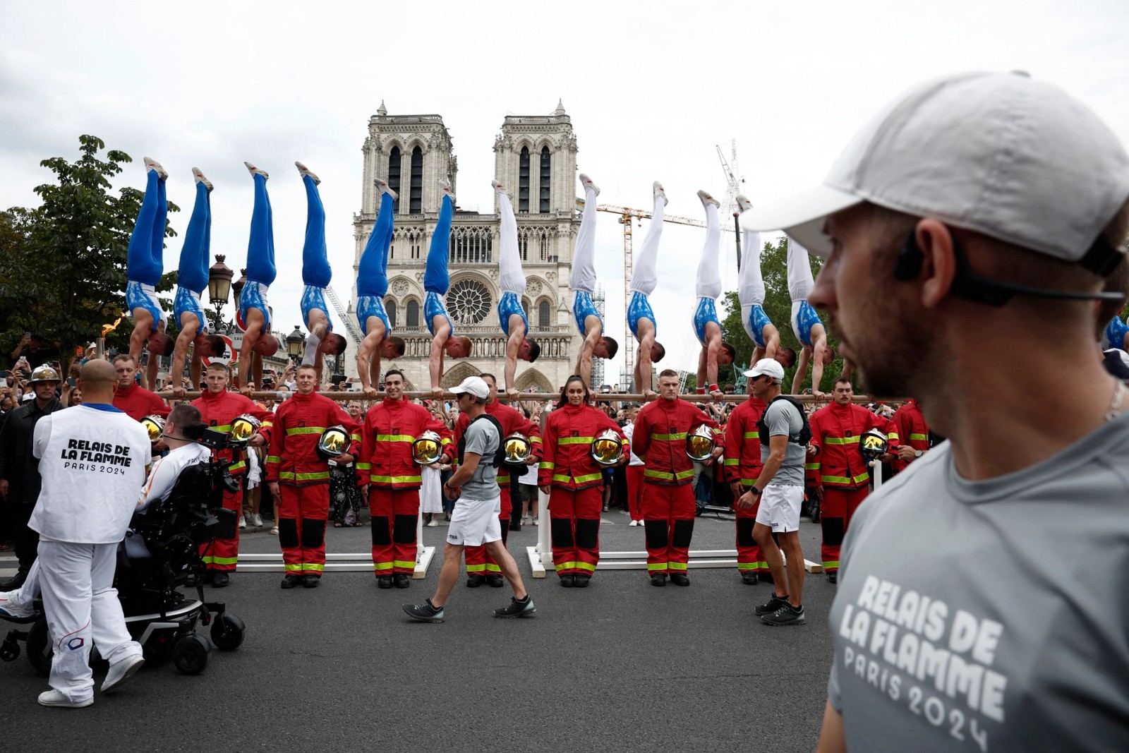 مراسم استقبال از مشعل بازیهای المپیک در مقابل کلیسای نتردام، پاریس، ۲۴ تیر