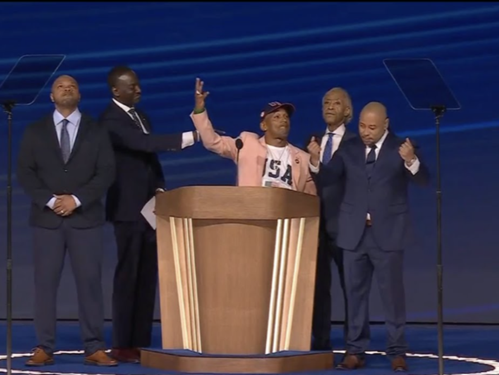 ال شارپتون، رهبر حقوق مدنی در صحبتهایش بر ماهیت تاریخی نامزدی هریس تاکید کرد و یادآور شد که ۵۲ سال پیش، او مدیر کارزار جوانان برای نماینده سابق خانم شرلی چیزهلم در انتخابات اولیه دموکراتها برای ریاستجمهوری در سال ۱۹۷۲ بود. او گفت چیزهلم در سال ۲۰۰۵ درگذشت، اما «میدانم او امشب ما را تماشا میکند، در حالی که یک زن سیاهپوست برای پذیرش نامزدی رییسجمهوری ایالات متحده آمریکا به پا میخیزد.»
