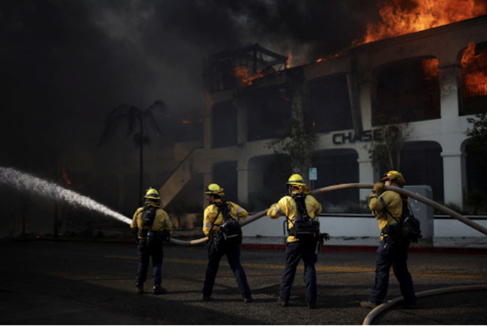 برآورد شده است که در آتشسوزی اول، نزدیک به ۳۰۰ خانه عمدتا در منطقهی ثروتمندنشین پسیفیک پَلِیسیدز تخریب شد.