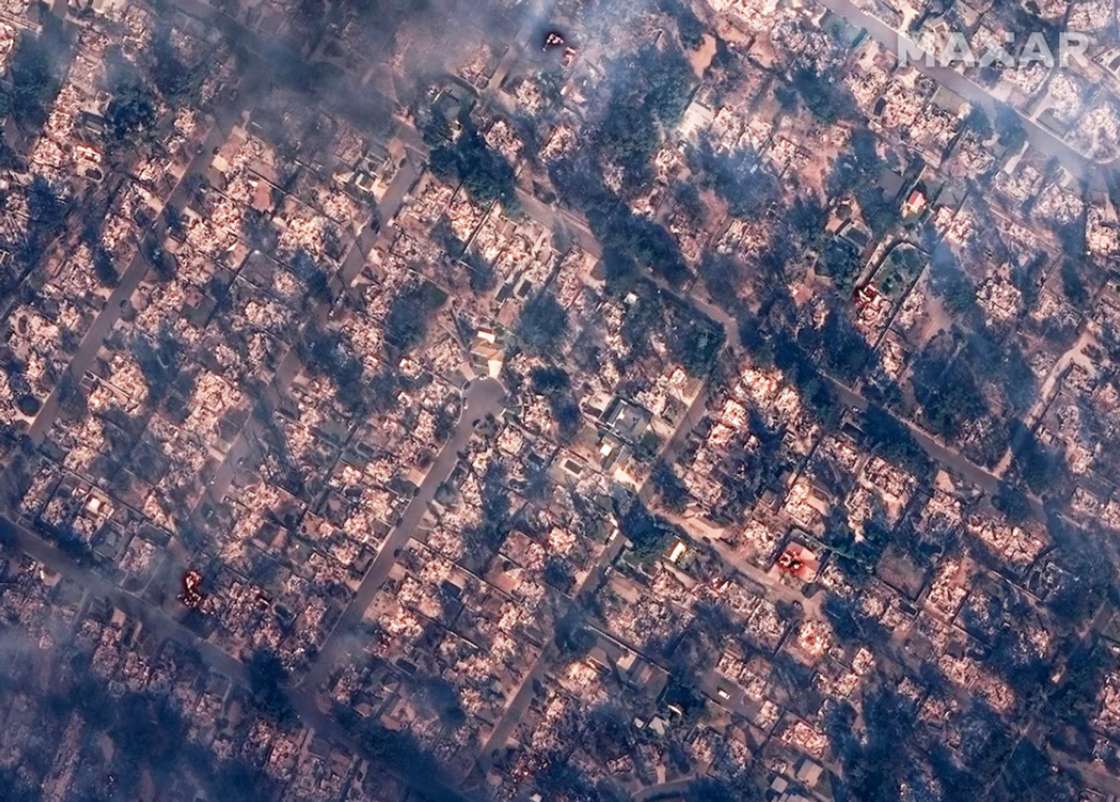 تصاویر هوایی نشان می‌دهد خانه‌های زیادی به‌صورت بلوک‌به‌بلوک تخریب شده‌اند و تصاویر ماهواره‌ای نیز ستون‌های غلیظ دود را نشان می‌دهند که از محل آتش‌ها به‌سمت جنوب غربی و روی اقیانوس آرام در حال حرکت است.