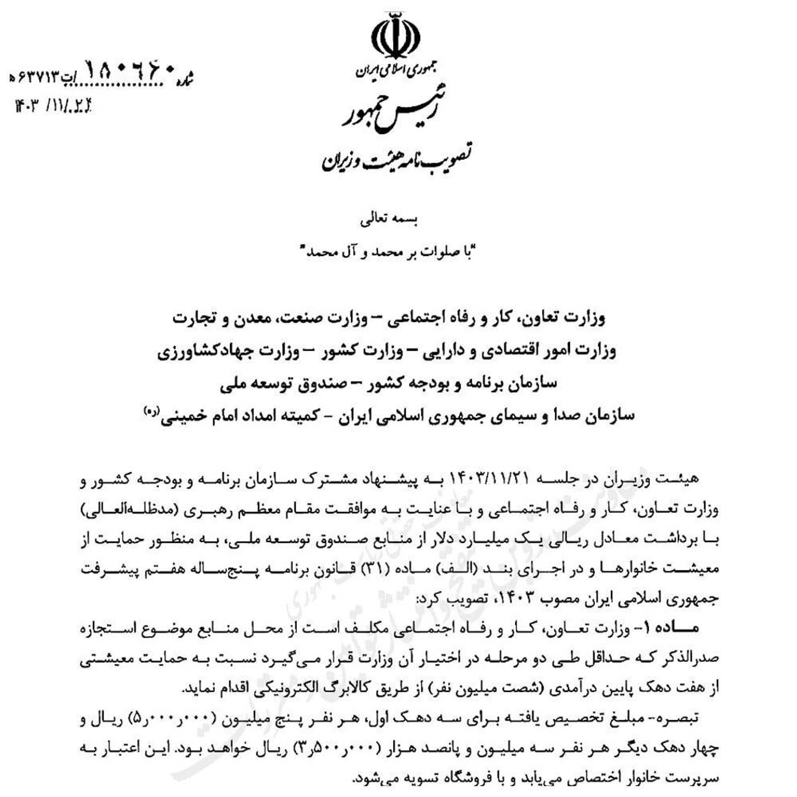 پیش از اظهارات مسعود پزشکیان از روز گذشته، برخی خبرگزاری‌های داخلی با انتشار تصویری از مصوبه هیئت وزیران، این خبر را اعلام کردند.