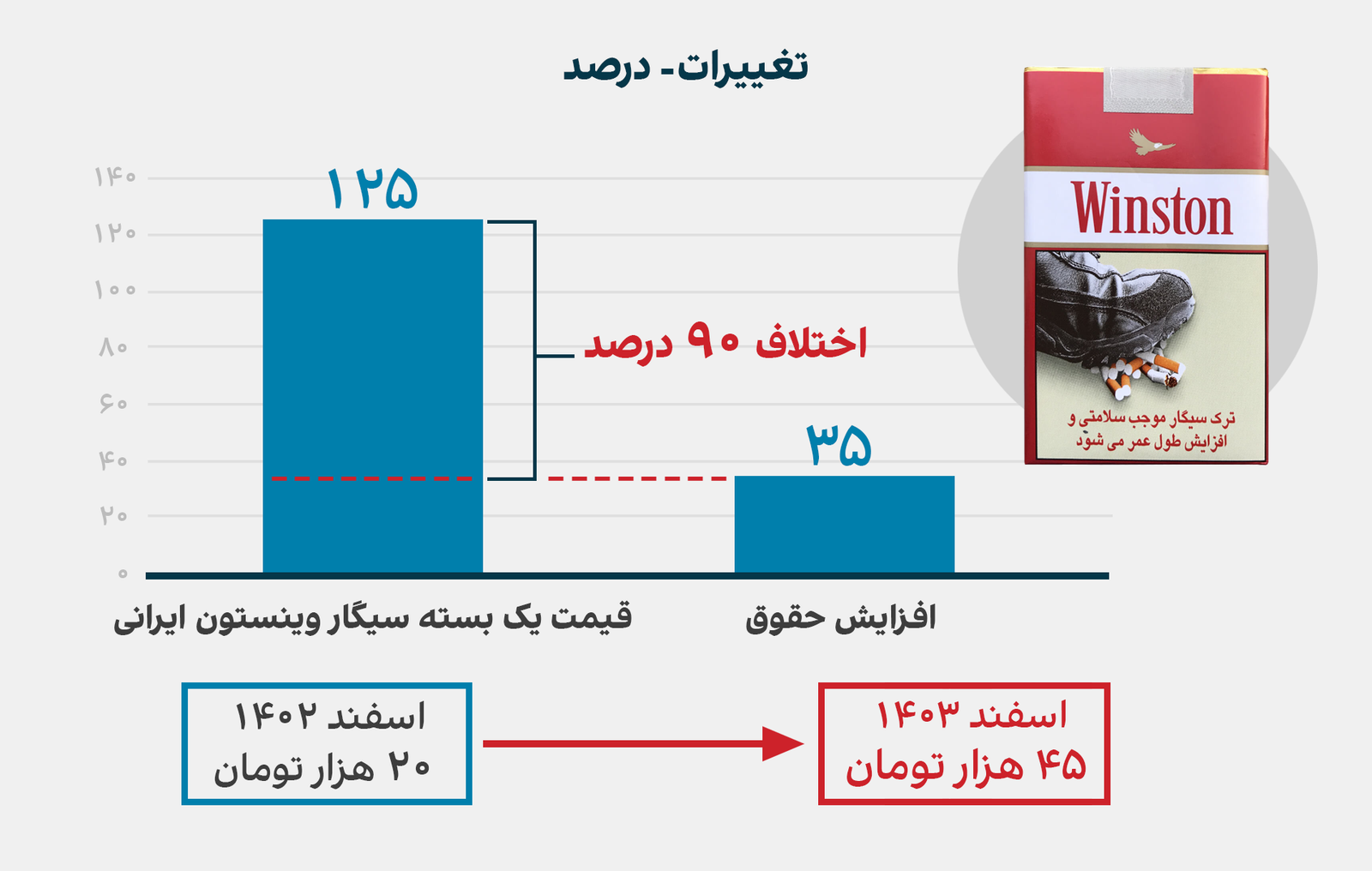 مرکز آمار جمهوری اسلامی، تورم نقطه به نقطه دخانیات را ۲۷ درصد در بهمنماه اعلام کرده است اما گزارش شهروندان از سطح بازار نشان میدهد افزایش قیمت سیگارهای ایرانی و خارجی به طور میانگین بیش از ۱۳۰ درصد بوده است. حتی سیگارهای ایرانی کمطرفدار نظیر بهمن سیلور که سال گذشته بستهای ۱۸ هزار تومان بود، اکنون به ۲۲ هزار تومان رسیده است.