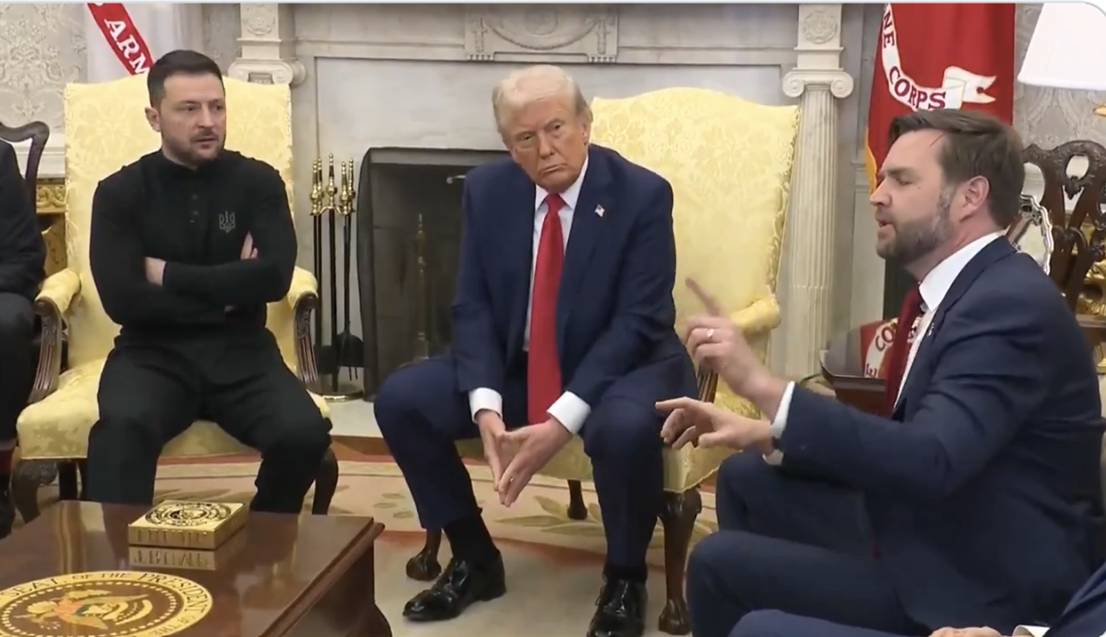 جِیدی ونس، معاون رئیسجمهور ایالات متحده، مداخله کرده و گفت که زلنسکی با حضور در دفتر بیضیشکل و مطرح کردن مواضعش، بیاحترامی کرده است. ترامپ نیز با او همعقیده بود.