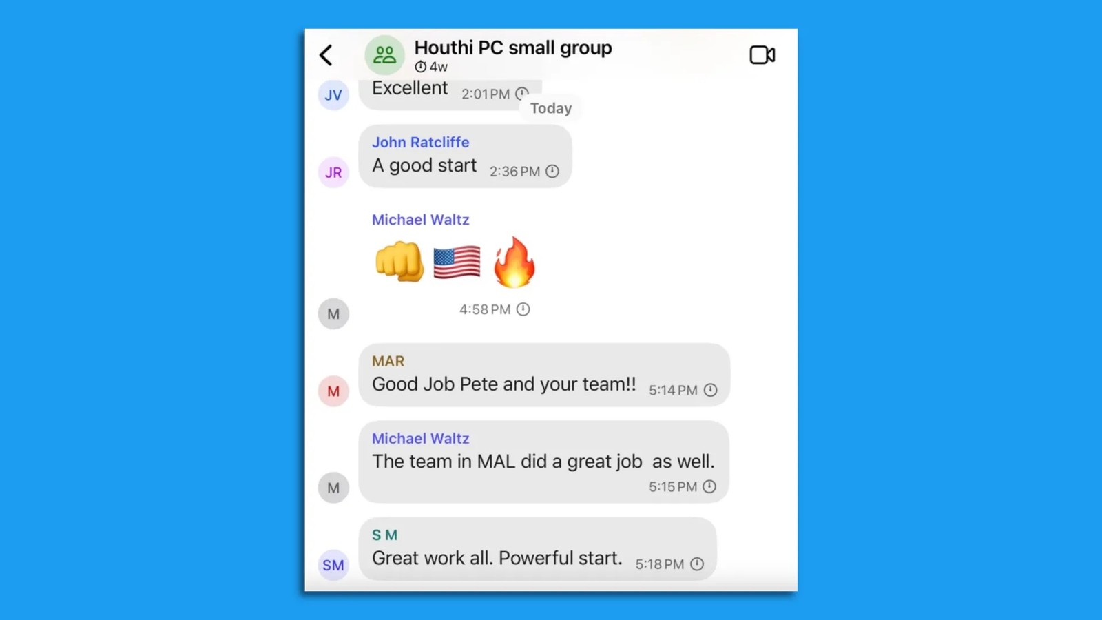طبق گزارش جفری گلدبرگ، پیت هگست وزیر دفاع، مایکل والتز مشاور امنیت ملی و جیدی ونس معاون رییسجمهوری از جمله حاضران در این چت بودند.