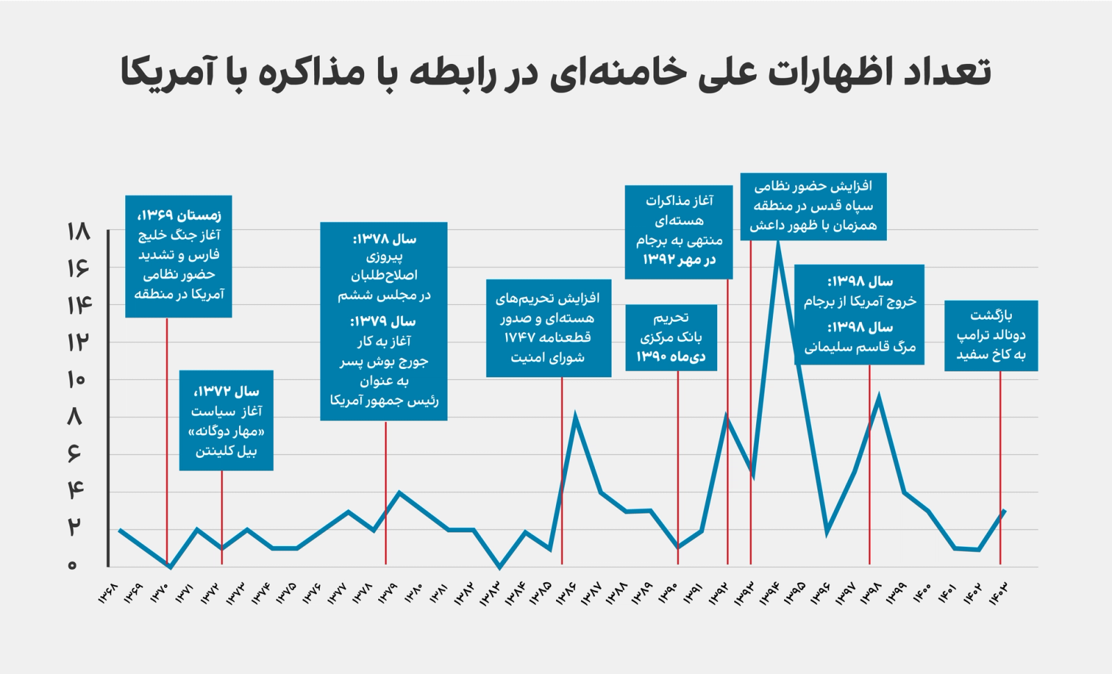 تعداد سخنرانیها، صرفنظر از محتوا، در مقاطعی افزایش یافته که با وقایع سیاسی داخل ایران، آمریکا و منطقه رابطه معناداری داشتهاند.