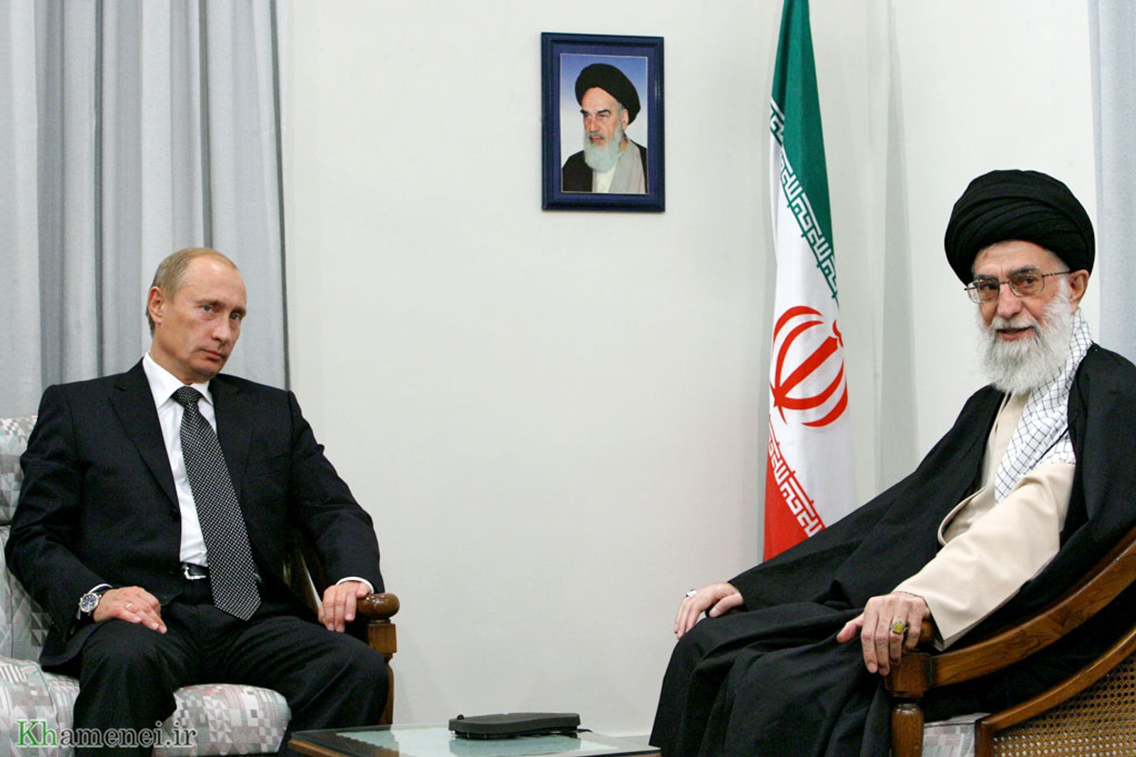 علی خامنهای در طول دوران رهبری خود هرگز به خارج از ایران سفر نکرده، اما ولادیمیر پوتین تاکنون چندین بار به ایران سفر و با رهبر جمهوری اسلامی دیدار کرده است.