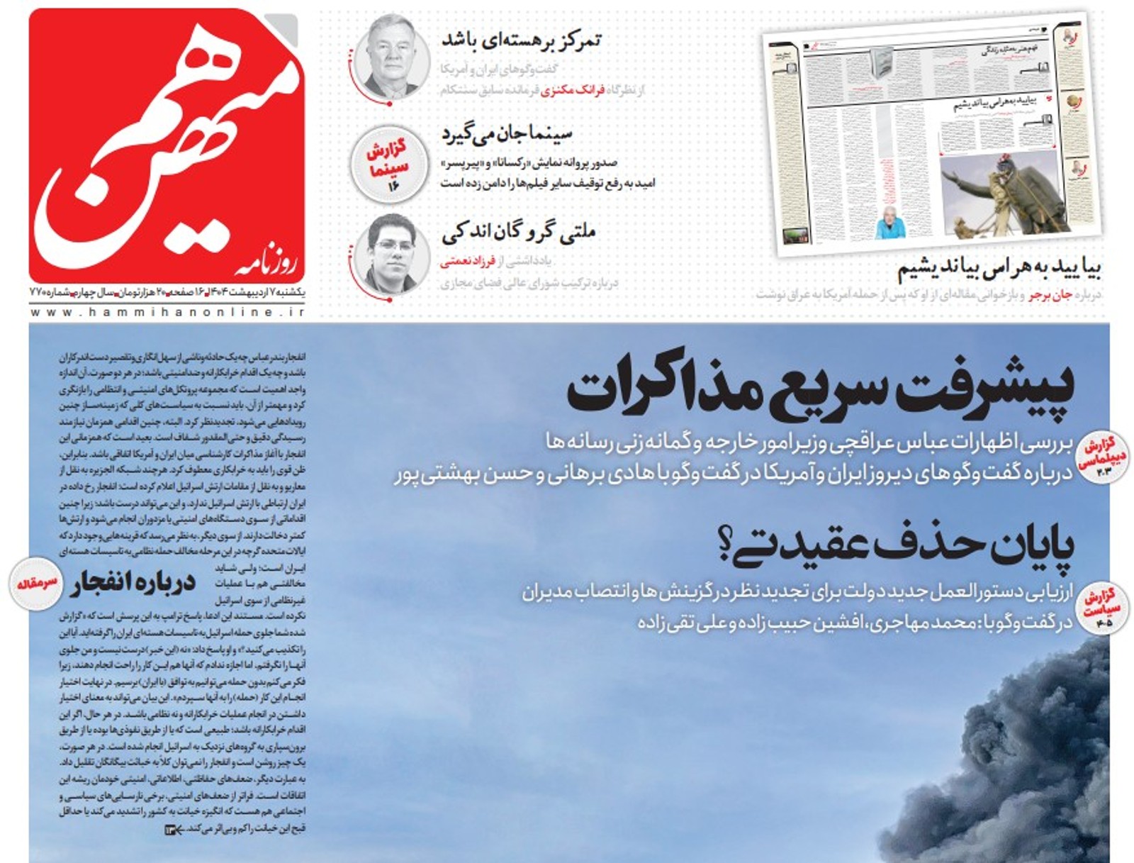 هم‌میهن در سرمقاله خود، با اشاره به اینکه احتمالا اسرائیل به طور مستقیم در این انفجار دخالت نکرده و آن را به «نفوذی‌ها یا گروه‌های نزدیک به اسرائیل» برون‌سپاری کرده است، نسبت به «خیانت» داخلی هشدار داد.