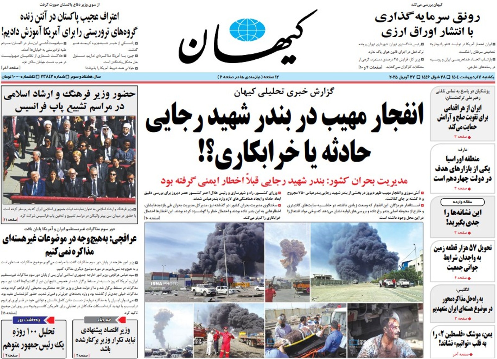 واکنش روزنامه‌های صبح تهران به انفجار بندر رجایی