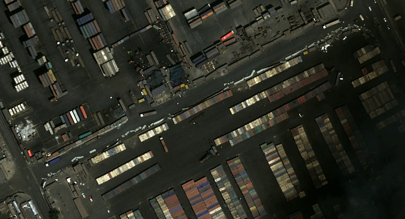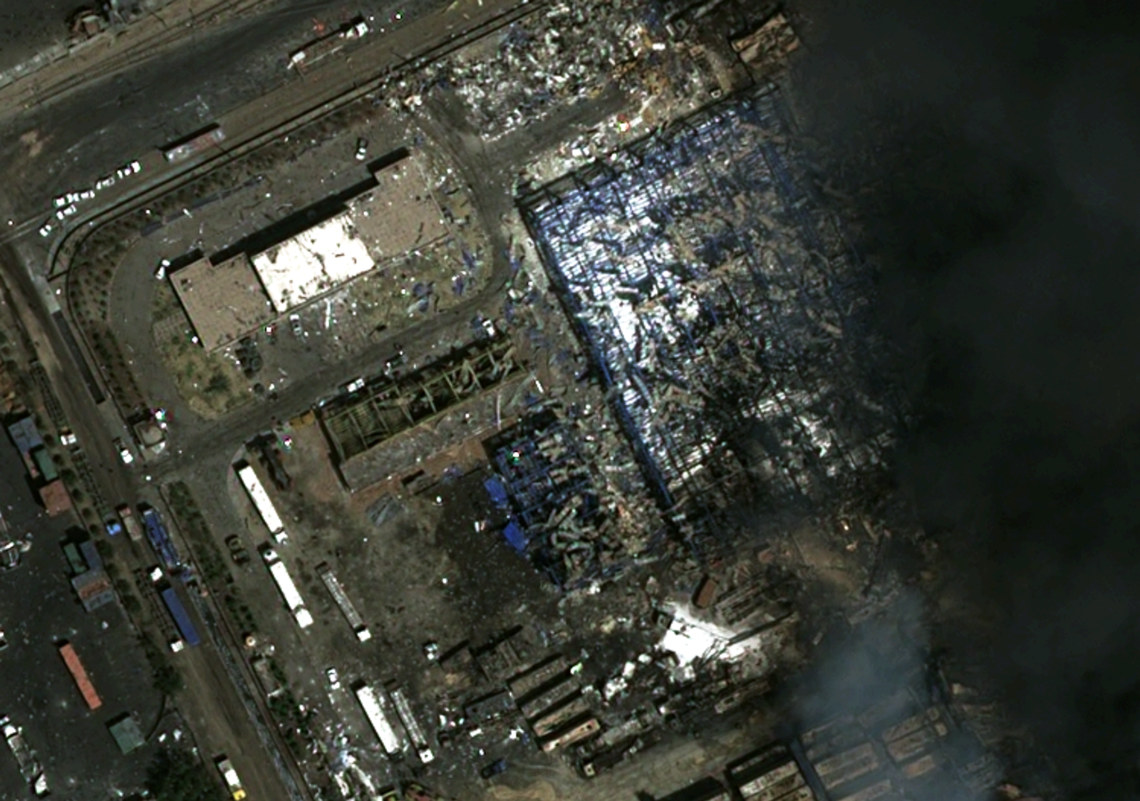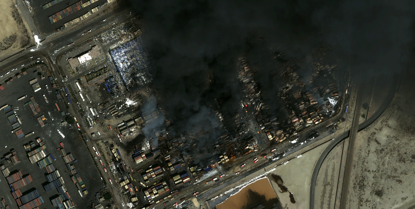 تصاویر ماهواره‌ای نشان می‌دهد محوطه سینا، فضایی در حدود ۱۵ هکتار به طور کامل تخریب شده است. در تصاویر، کانتینرهای متلاشی‌ شده به خوبی قابل شناسایی هستند. فاصله این منطقه تا در خروج و گیت کنترل اسکه حدود ۸۰۰ متر و تا اولین اسکله، ۱۴۰۰ متر است.