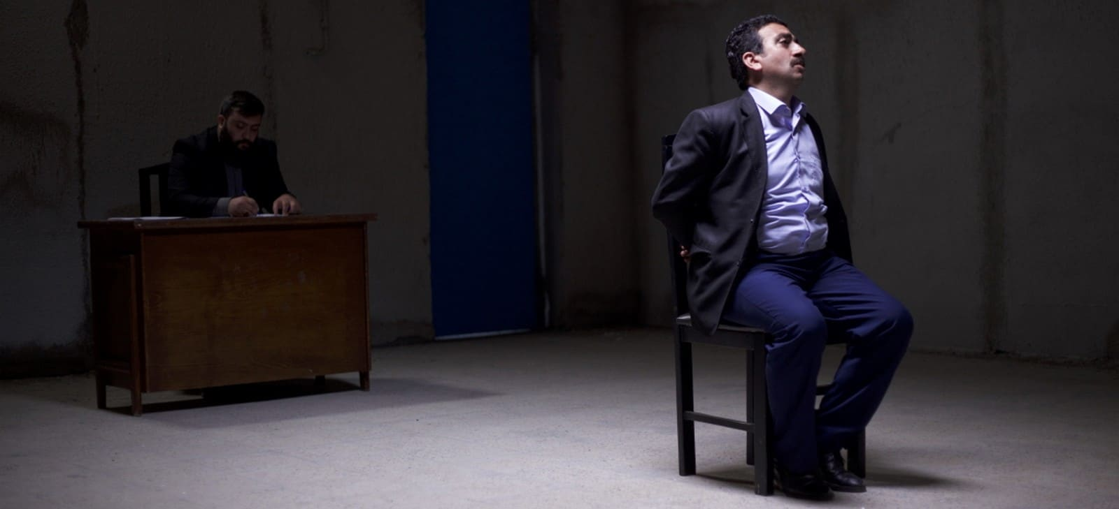 یکی از فوقالعادهترین صحنههای فیلم زمانی است که مرد درمانده، پشت به فرمانده اطلاعاتی -که او نباید صورتش را ببیند و به همین دلیل به پشت نشانده شده- التماس میکند که دست از سرش بردارند. دوربین در این نمای طولانی دور او میچرخد تا رفتهرفته بغضش میترکد و بعد در تصویری تکاندهنده با حرکت همان دوربین در همان نما میفهمیم که این هم یک بازی امنیتی است و در واقع پشت سر او خالی است؛ او با باد هوا حرف میزند.