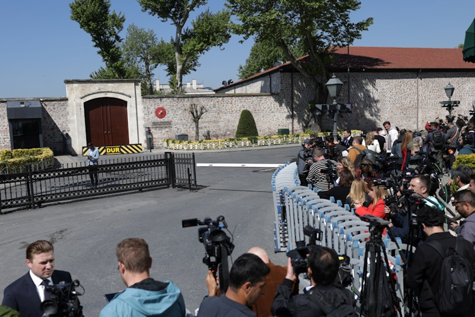 خبرنگاران حاضر  در مقابل دفتر دولتی ریاست‌جمهوری ترکیه در کاخ دلماباغچه، استانبول