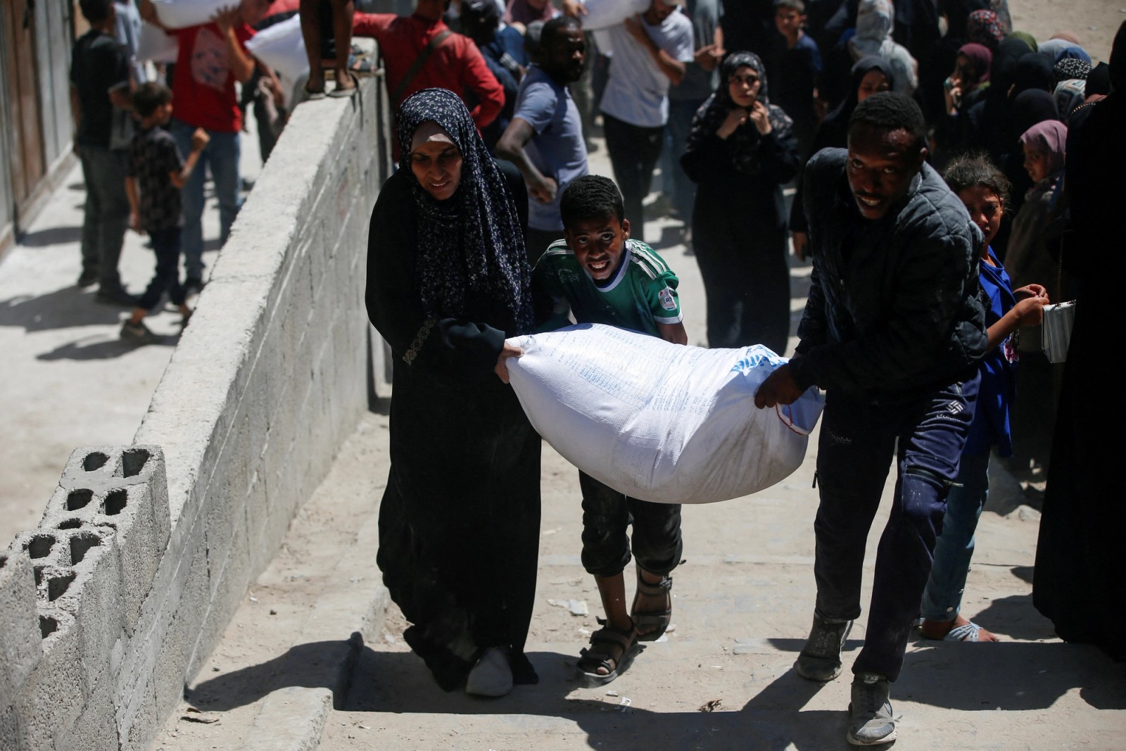 فلسطینیان در صف دریافت کمک‌های غذایی، شهر غزه،‌ پنجم تیر