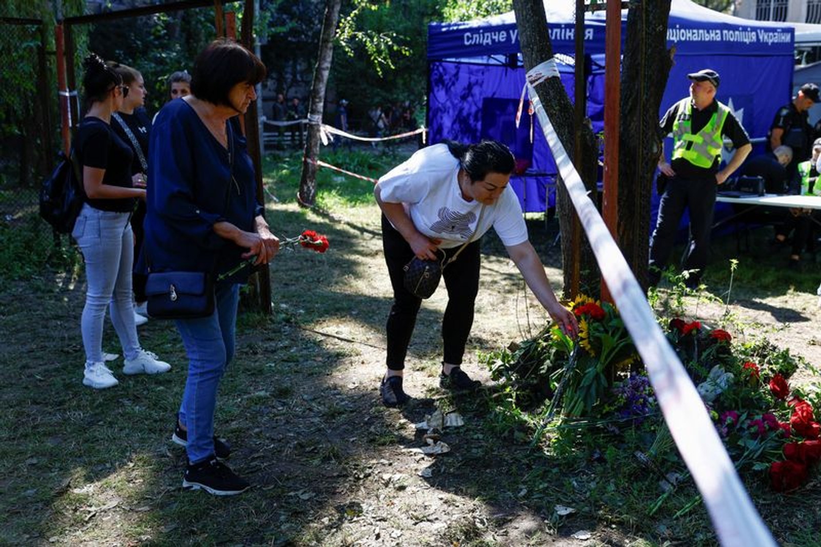 جمعه، مردم سوگوار کی‌یف در مقابل ساختمان مسکونی ویران‌شده گل گذاشتند و شمع روشن کردند؛ در حالی که بیل‌های مکانیکی قطعات سنگین آوار را جابه‌جا می‌کردند.