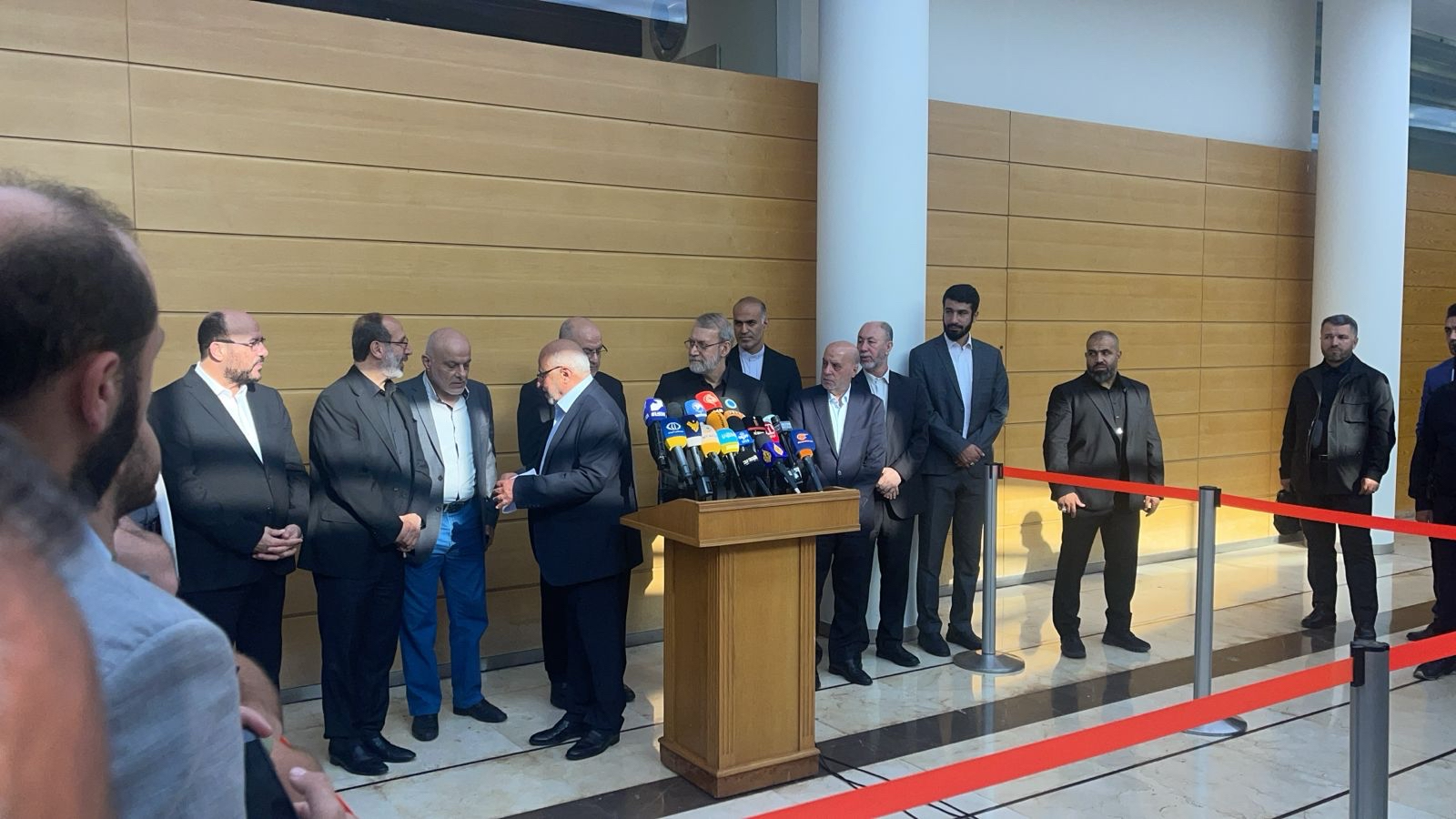 لاریجانی در بدو ورود به بیروت گفت: «همواره به‌دنبال تحقق منافع ملی لبنان خواهیم بود. رنج مردم لبنان، رنج ماست و جمهوری اسلامی ایران همواره در کنار ملت لبنان خواهد بود.»