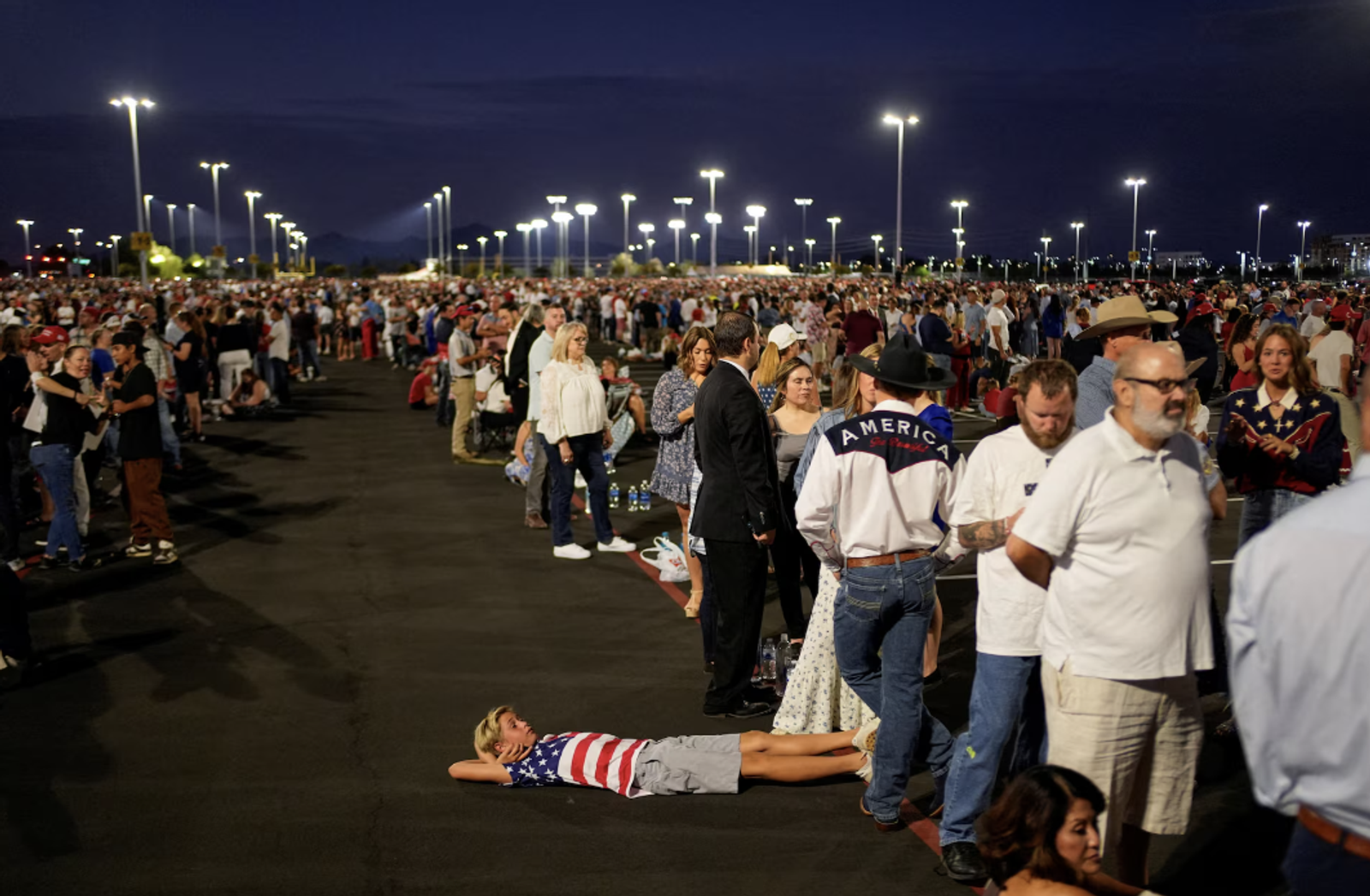 دونالد ترامپ، رییس‌جمهوری ایالات متحده که هنگام ترک کاخ سفید به مقصد ورزشگاه اِستِیت‌فارم یک‌شنبه را «روزی بسیار سخت» خوانده بود، با تشویق جمعیت درحالی که نام ایالات متحده را فریاد می‌زدند، وارد مراسم شد.