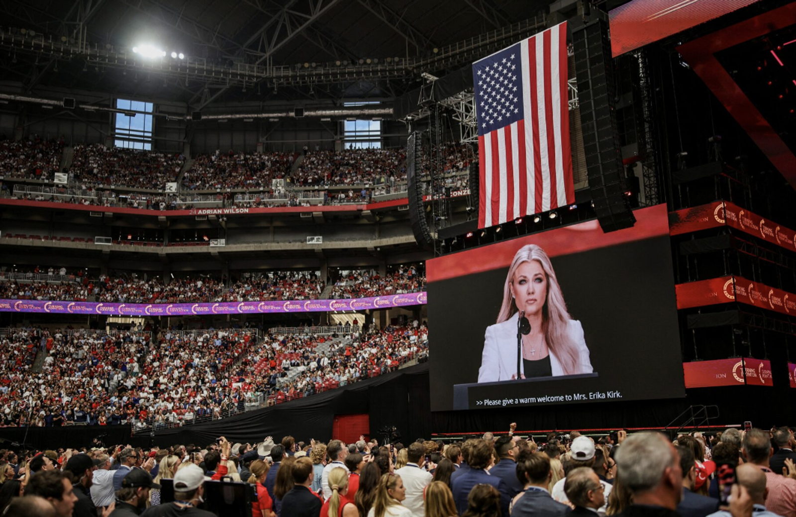 علاقه‌مندان به چارلی کرک از ساعت‌ها پیش از شروع مراسم منتظر ورود به ورزشگاه بودند.