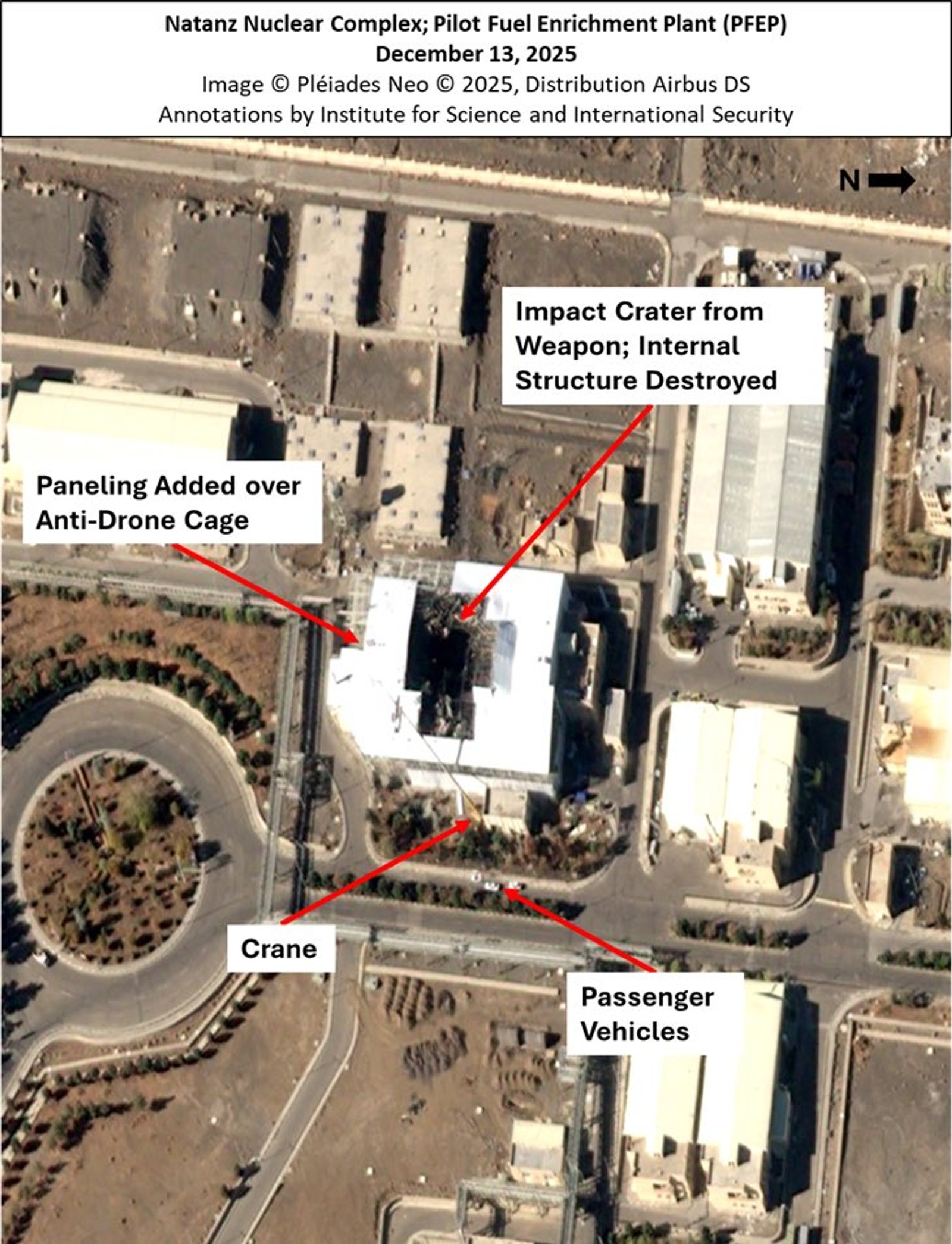 این موسسه در حساب خود در شبکه اجتماعی ایکس، همراه با تصویری ماهواره‌ای به تاریخ ۱۳ دسامبر ۲۰۲۵ (۲۲ آذر)، نوشت: «در تاسیسات غنی‌سازی سوخت پایلوت (PFEP) در مجتمع هسته‌ای نطنز نشانه‌هایی از فعالیت مشاهده شده است.»