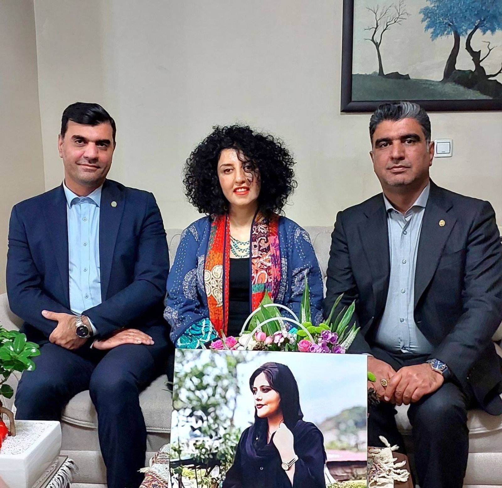 تصویری از دیدار خسرو علی‌کردی و جواد علی‌کردی با نرگس محمدی در سال ۱۴۰۳