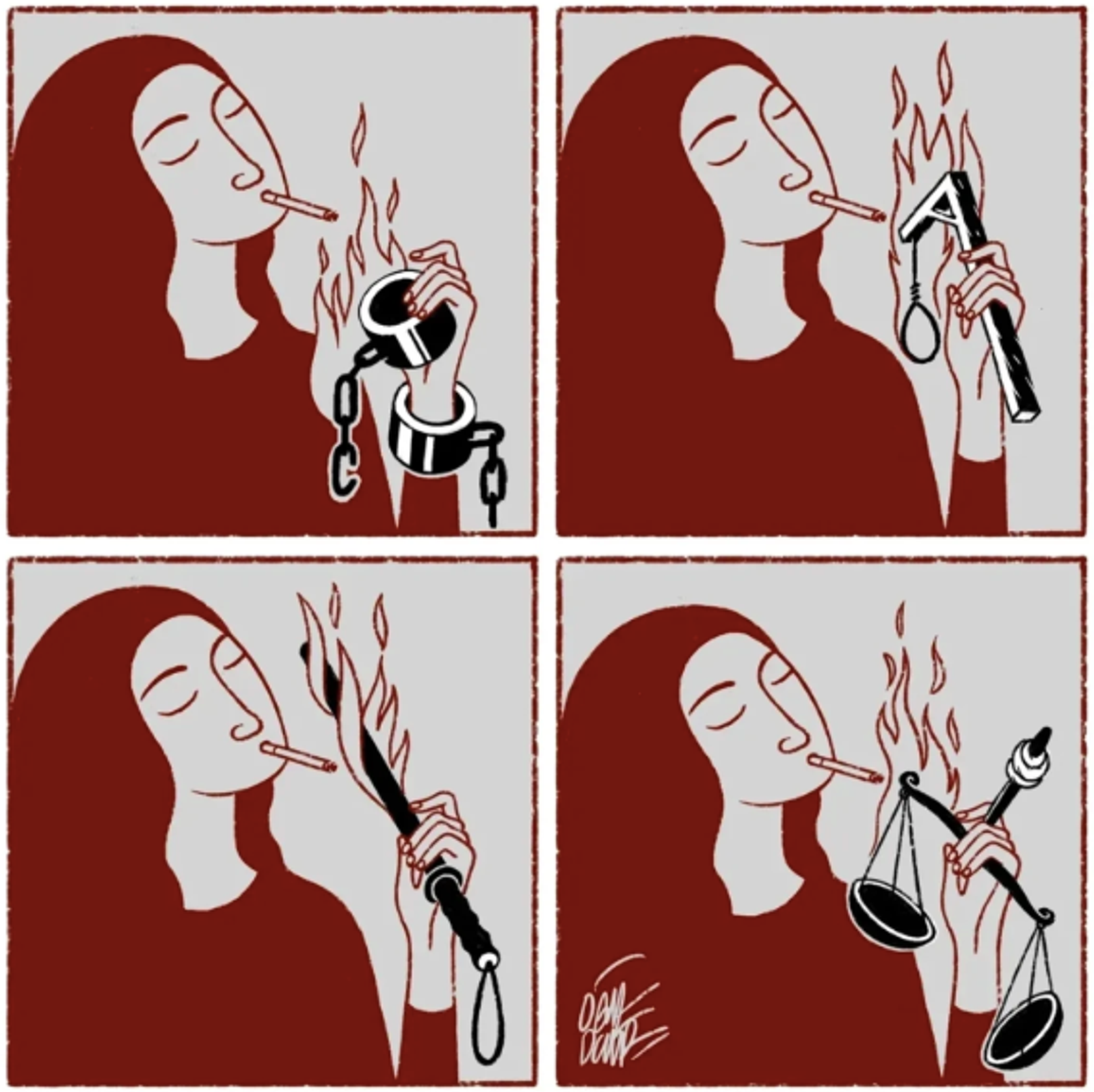 در توضیح این تصاویر آمده است: «زنان فرانسه در حمایت از زنان ایران ایستادهاند. فعالان فمینیست راستگرای فرانسوی از گروهCollectif Nemesis ترند پرطرفدار روشن کردن سیگار با تصویر خامنهای توسط زنان ایرانی را بازسازی کردند. فمینیستهای چپگرا چه زمانی حمایت خود را نشان خواهند داد؟»