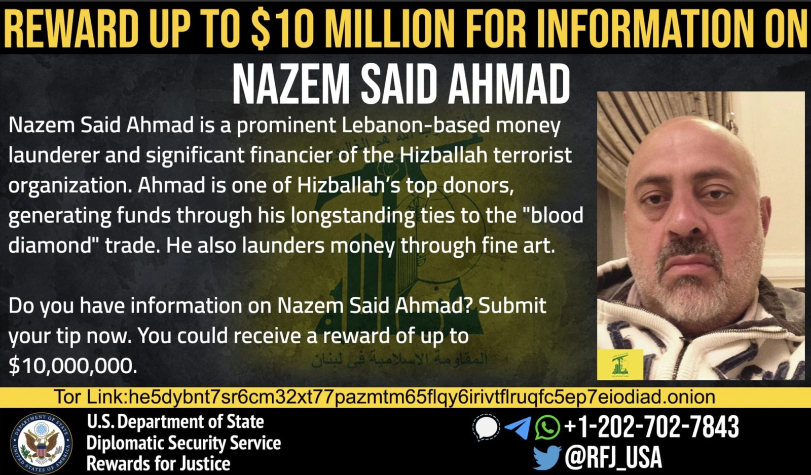“The individuals involved in this network used shell companies and fraudulent schemes to disguise Nazem Said Ahmad’s role in financial transactions,” said Under Secretary of the Treasury for Terrorism and Financial Intelligence Brian E. Nelson.