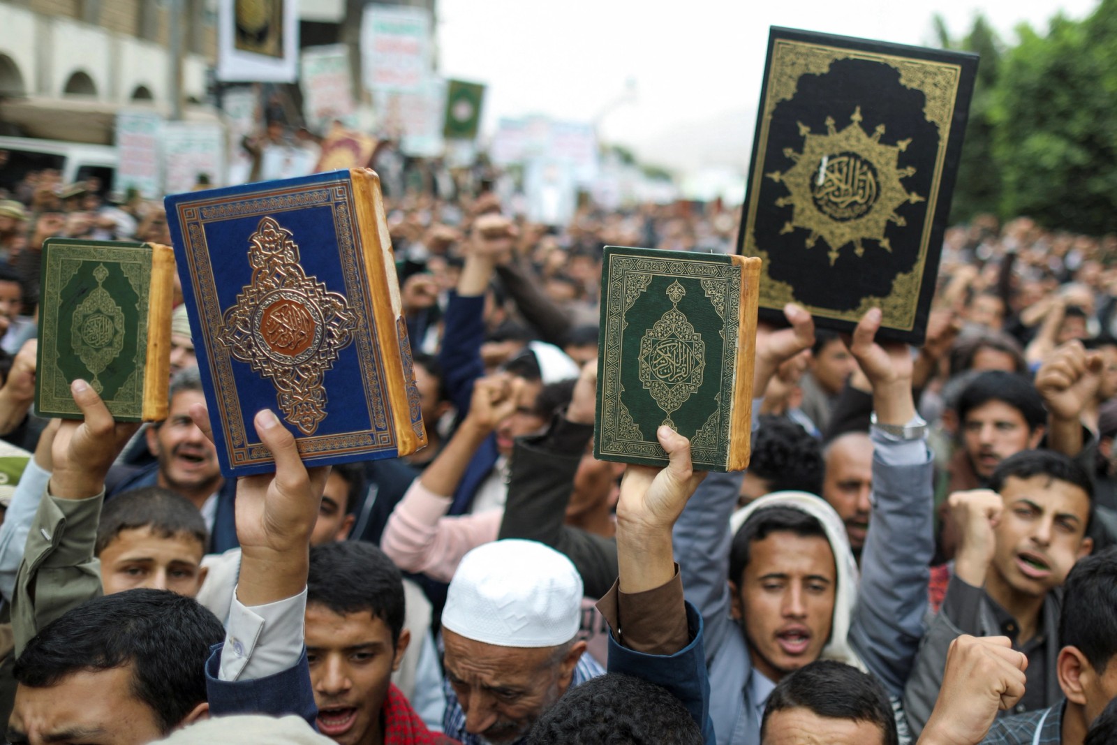 People demonstrate against the desecration of the Koran in Denmark, in Sanaa, Yemen July 24, 2023.