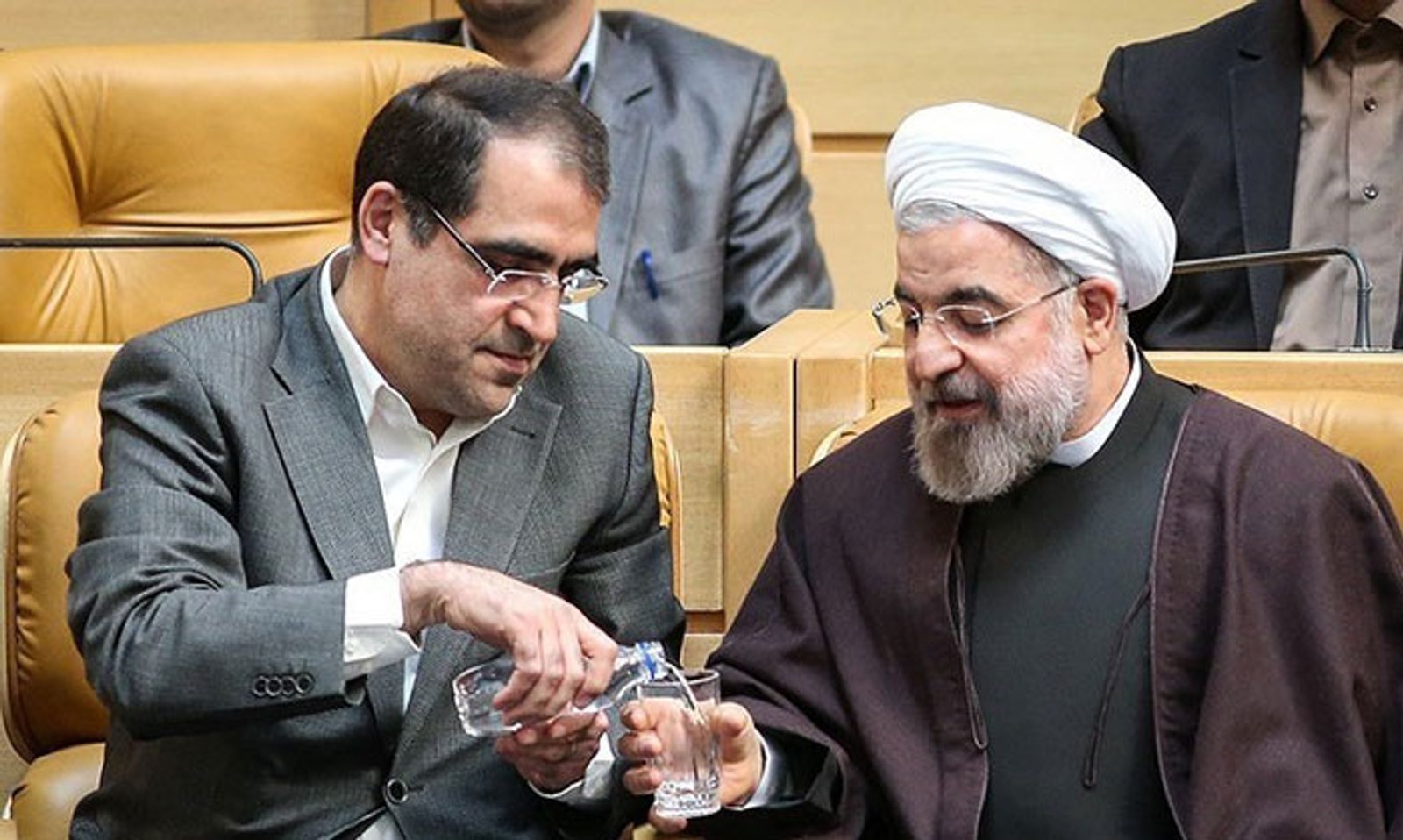 Former Health Minister Hassan Ghazizadeh Hashemi (left) and former President Hassan Rouhani