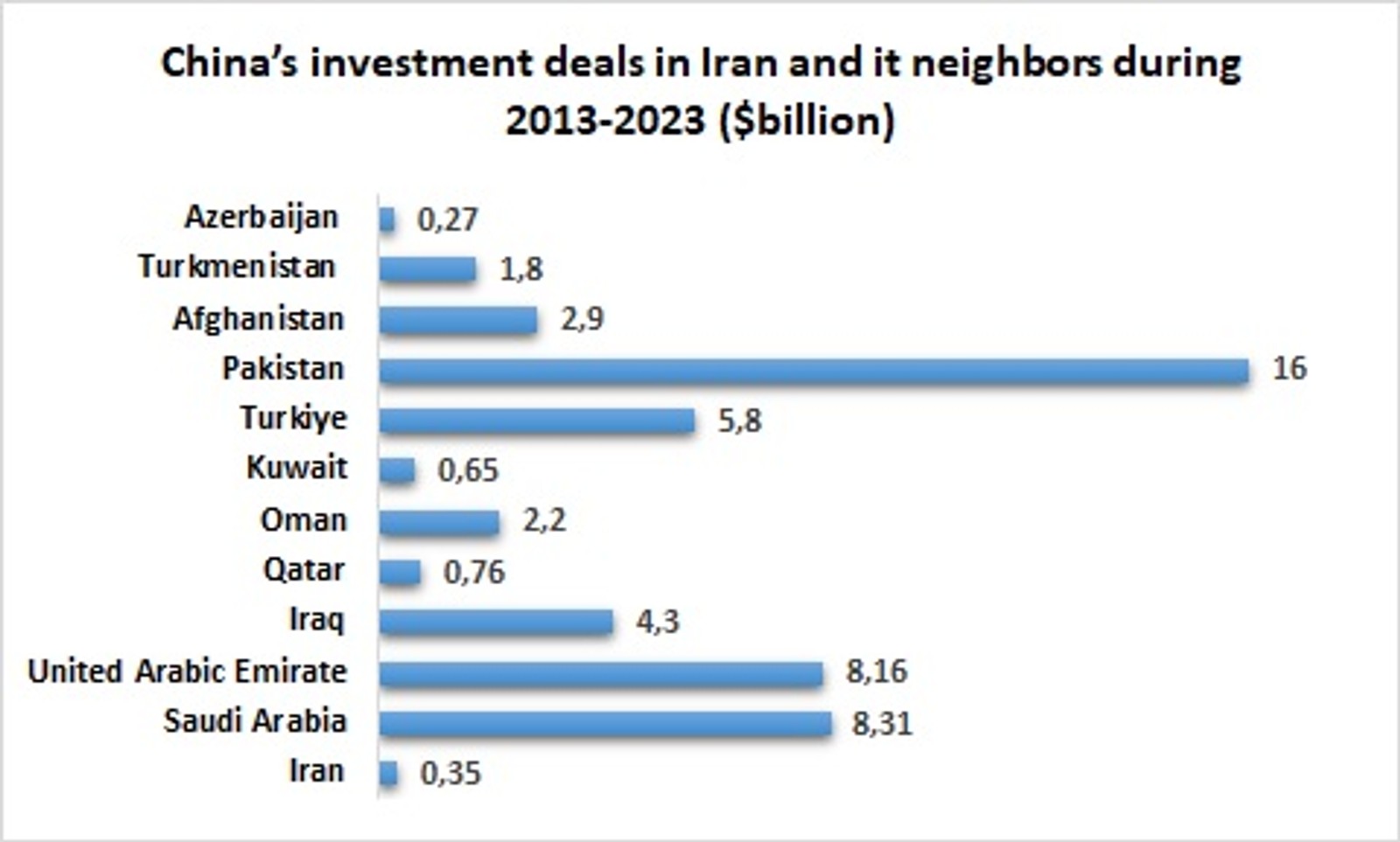 It has only signed two investment agreements with Iran during 2013-2023, of which one of them was canceled in 2018, when the United States left the JCPOA nuclear agreement with Iran.