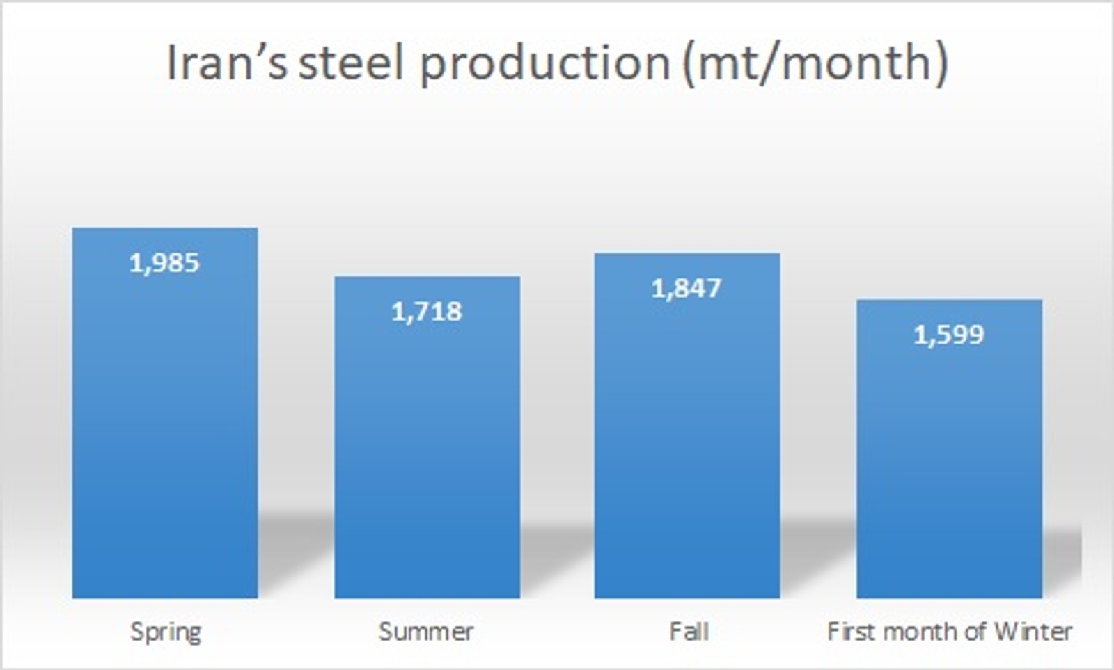 According to Iran Steel Manufacturers Association’s statistics, the country’s steel production has declined in last summer due to electricity deficit and plunged in January 2024 due to severe gas deficit.