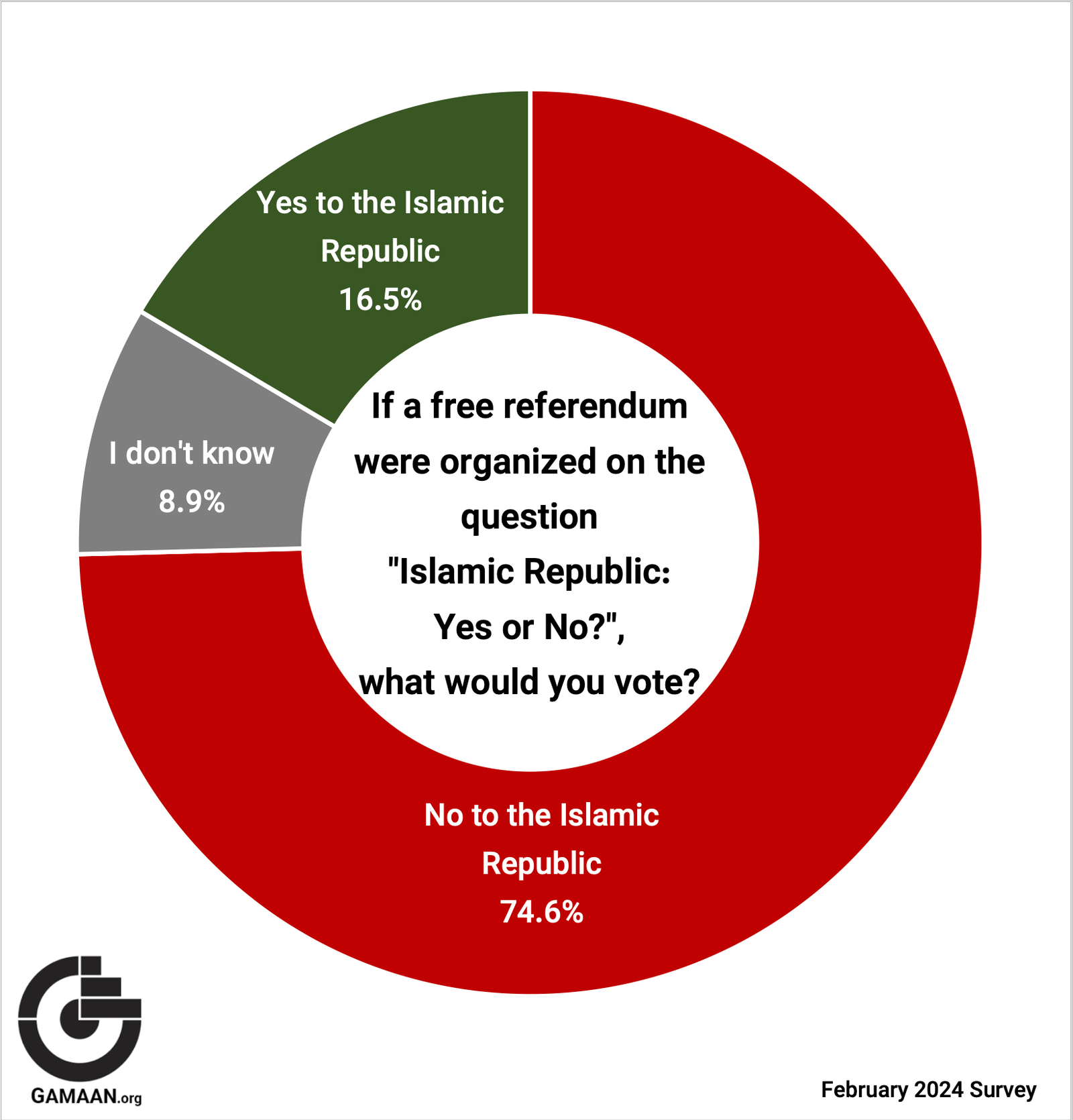 A sobering finding was the high number of people who would vote against the Islamic Republic in case of a referendum. In a hypothetical plebiscite with the question “Islamic Republic: Yes or No?” around 75 percent would vote “No,” 16 percent “Yes,” and about nine percent are unsure.