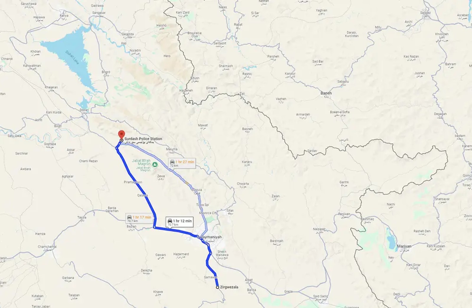 A map of the Iraqi Kurdistan with old and new Komala camps
