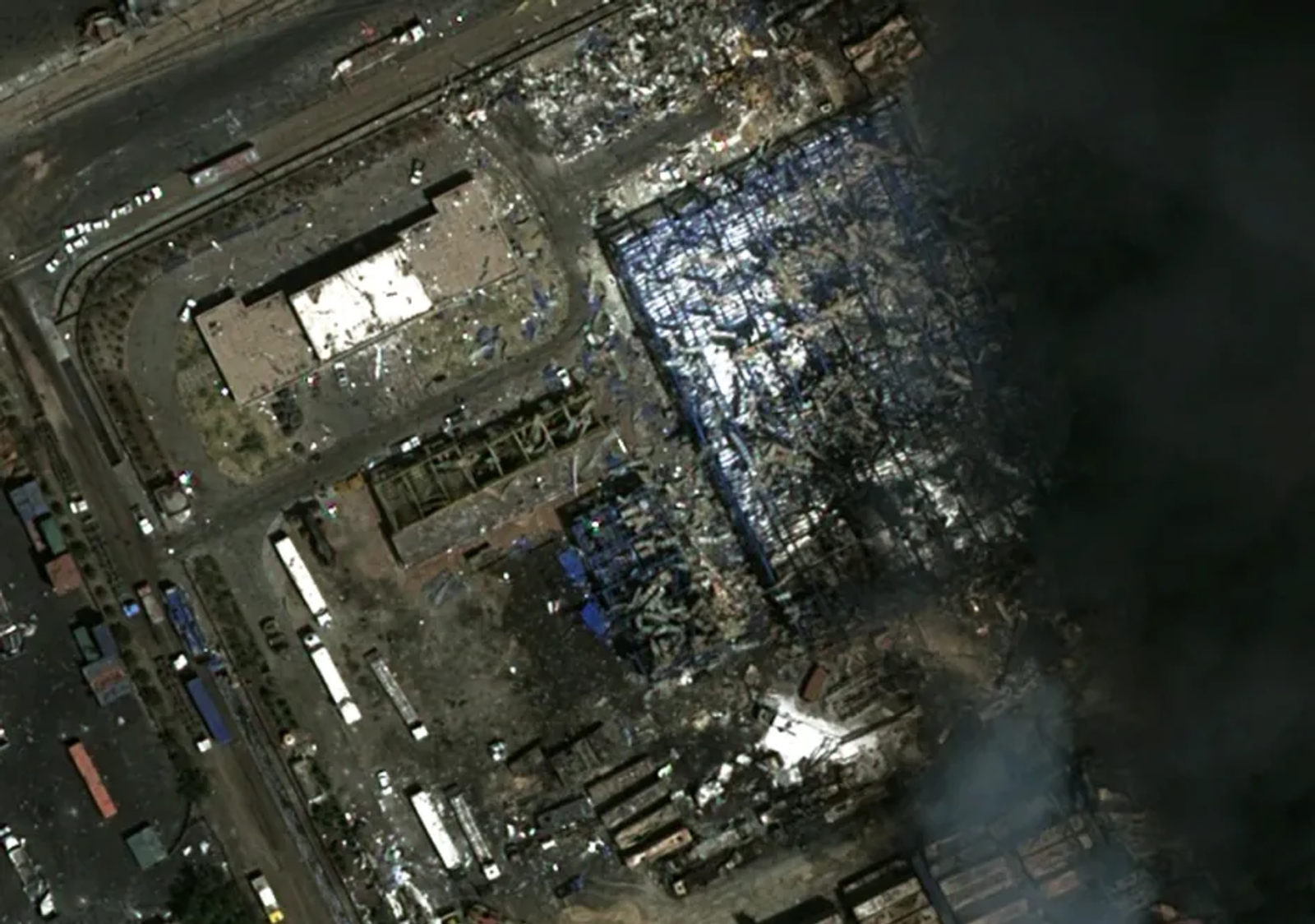 The satellite images reveal that the Sina yard, the blast's epicenter which could hold between 12,000 and 20,000 twenty-foot containers, has been completely destroyed.