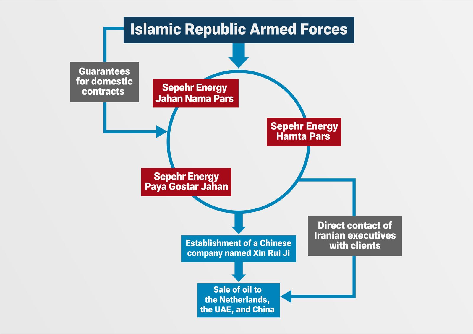 A Tehran-based company working on behalf of the Iranian military has spawned a network of shell companies to sell sanctioned Iranian oil to Asia and did business with a Netherlands-based firm that was aware of its government ties.